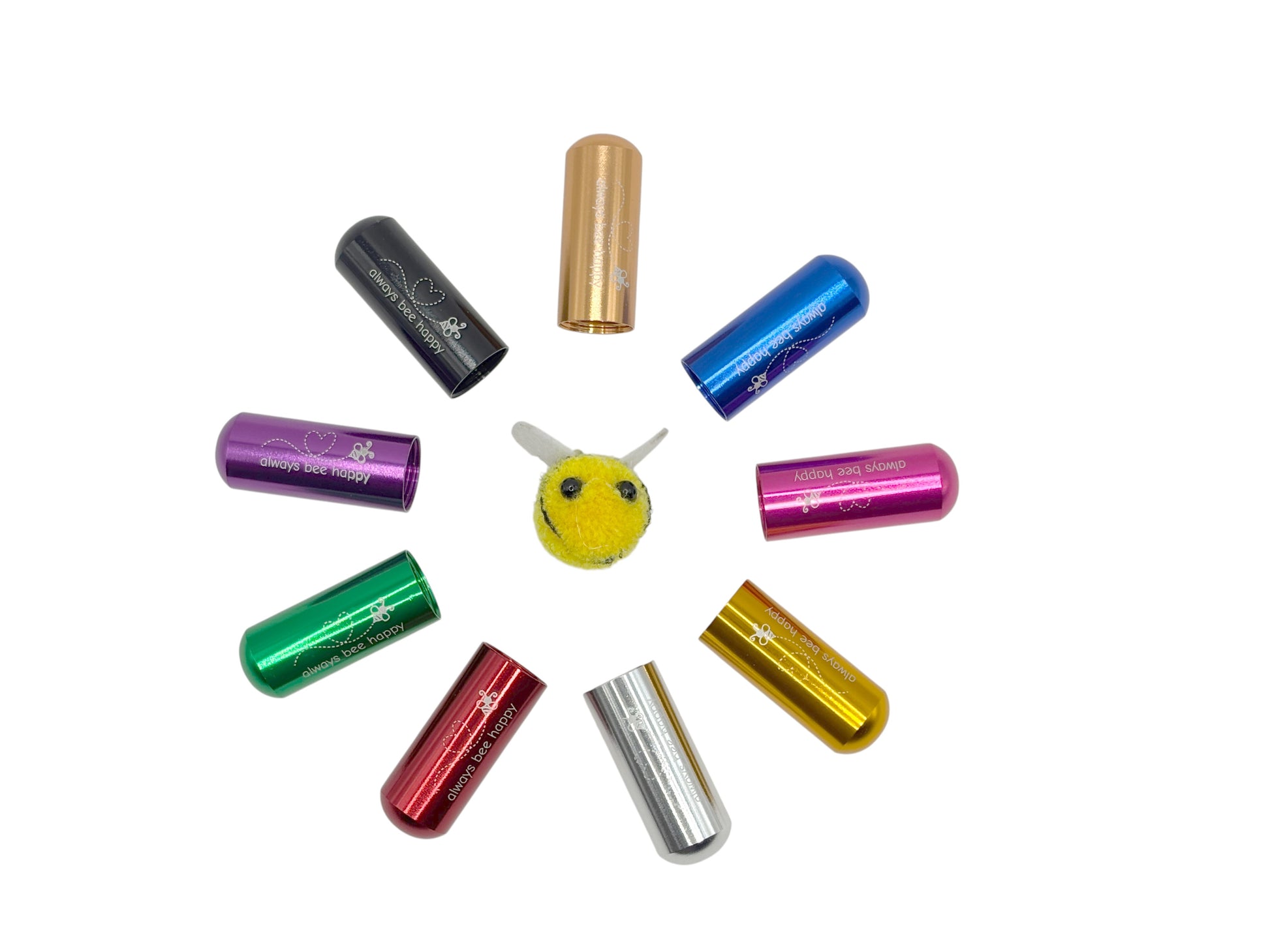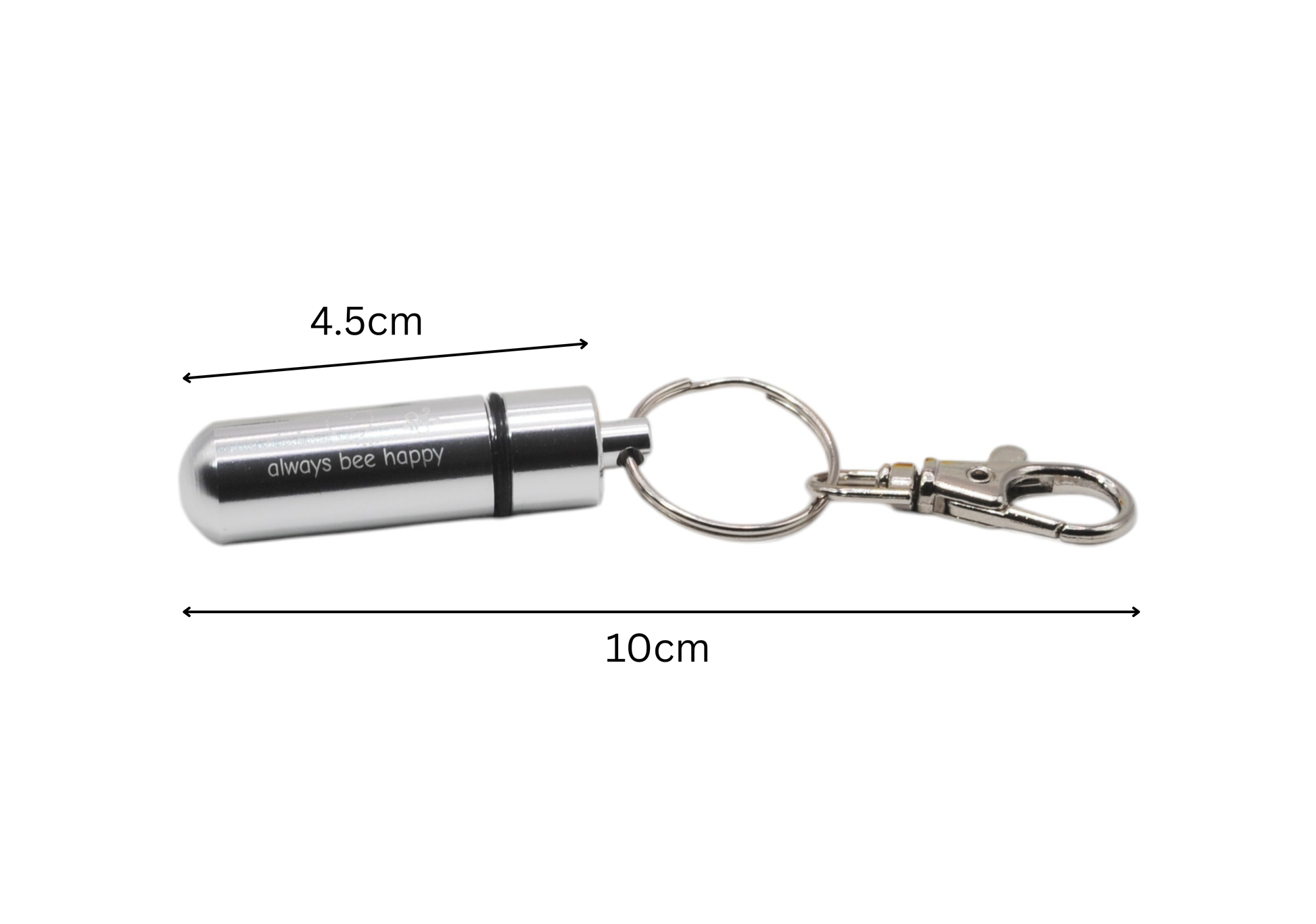 - Engraved Keyring: Beautifully engraved with "always bee happy", these keyrings contain a small glass vial and can be topped up many times from the accompanying dropper bottle.